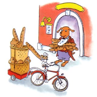 Able Baker Charlie is a mouse. He is a baker, and assists Baker Humperdink, a pig. Despite his small size, Able Baker Charlie is capable assisting with any step of the baking process, from stoking the oven, to mixing the dough, to putting loaves in the oven, and even delivering bread around Busytown. Below you may see a picture of Able Baker Charlie ably distributing French baguettes to Louie’s Restaurant.