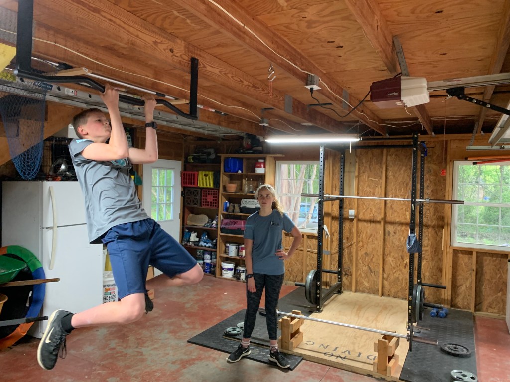 The big kids and I have been doing barbell workouts for a year now! While also continuing with the chin-ups and pull-ups:
