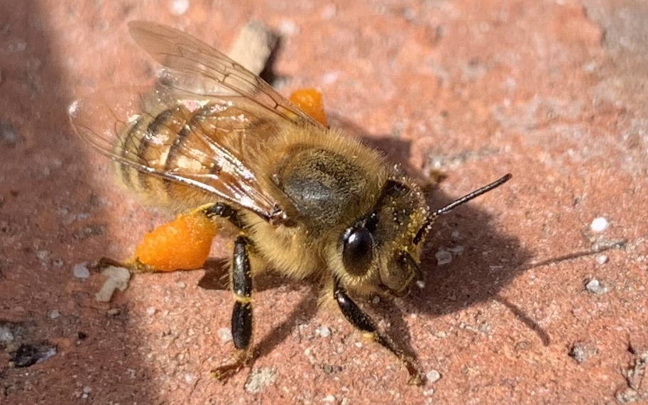 I also didn’t realize that bee poop was a thing, albeit much more dainty than that of birds. They seem to have established one of their cleansing flight paths directly over our cars.