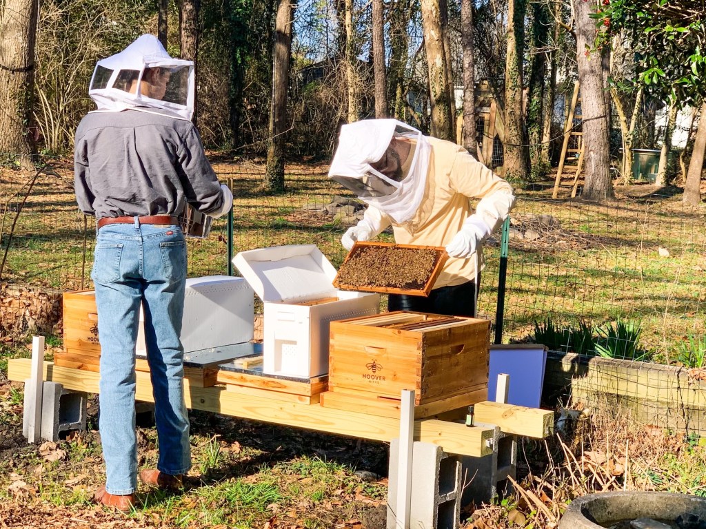 Charlotte and Asher have kept chickens for a few years, and we’ve been brainstorming how we can expand that. Asher settled on bee keeping and has been learning and strategizing for awhile. We took a class with our county bee keeping association this winter, and this week we set up our first two hives!